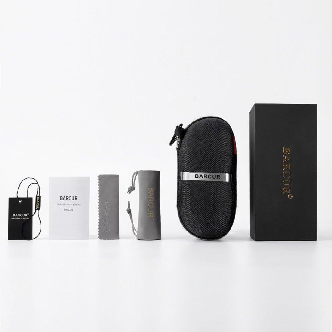 ¿Qué incluye la caja? Recibirás la experiencia completa: Las gafas, estuche de cuero sintético premium, bolsa de tela, paño de microfibra y la tarjeta de prueba de polarización.