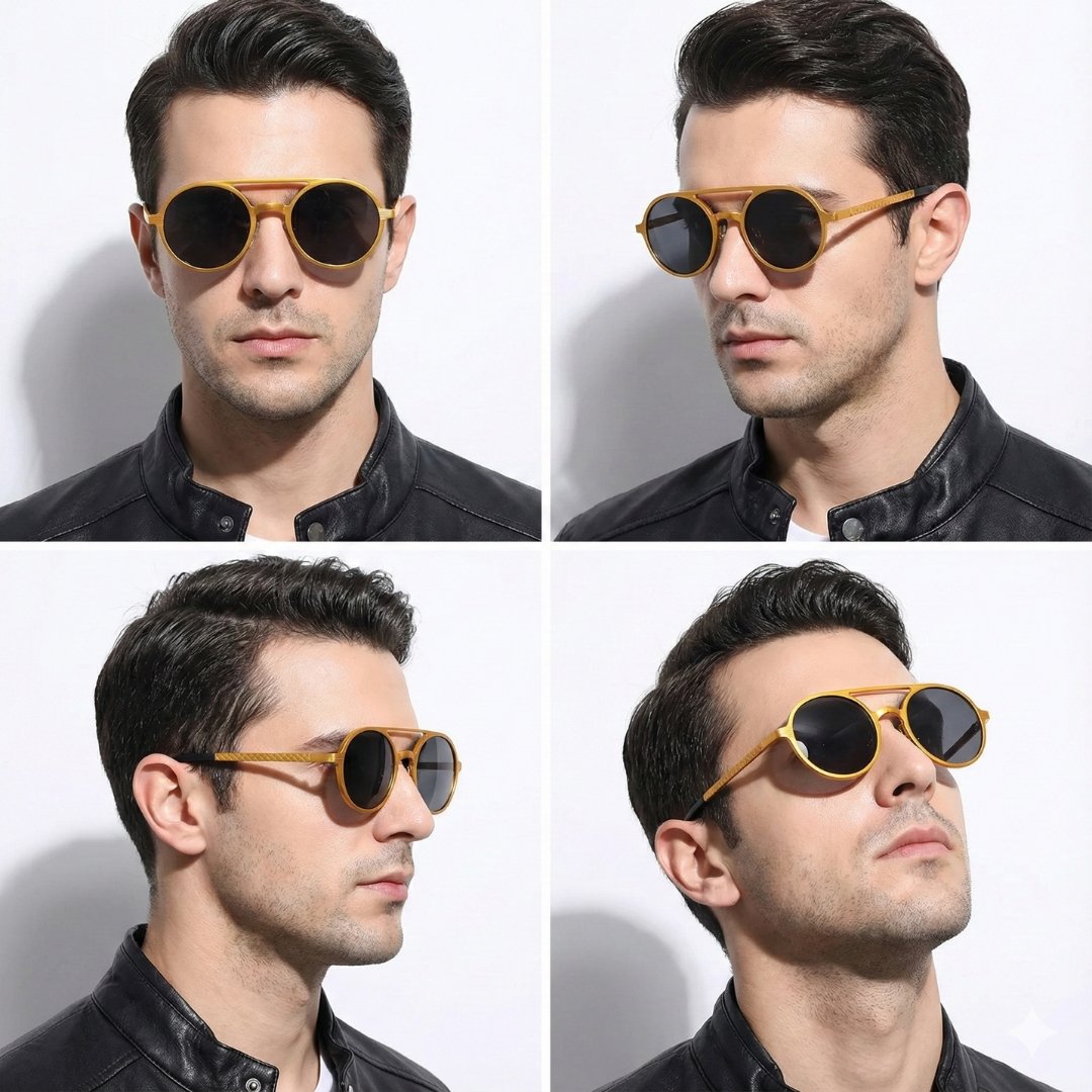 Olvídate de lo convencional. Las gafas de sol redondas polarizadas de nuestra colección “Steampunk” son una obra de ingeniería visual. Diseñadas para el hombre que aprecia los detalles mecánicos y la calidad de construcción superior.