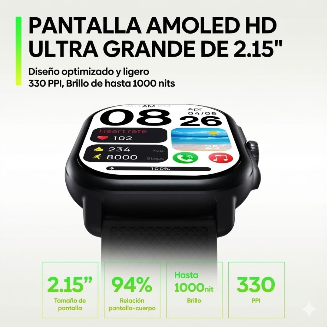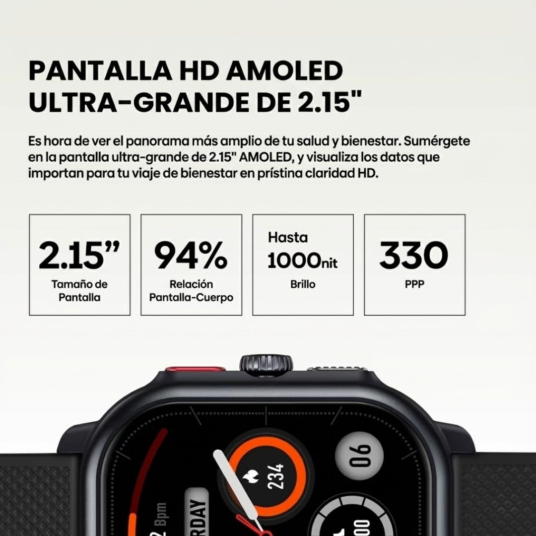 Lo primero que notarás en el Zeblaze Beyond 3 Pro es su impresionante pantalla AMOLED de 2.15 pulgadas. Con un brillo pico de 1000 nits, verás tus notificaciones y mapas claramente incluso bajo la luz directa del sol chileno. Además, está protegida por Corning Gorilla Glass, resistiendo golpes y rayaduras del uso diario.