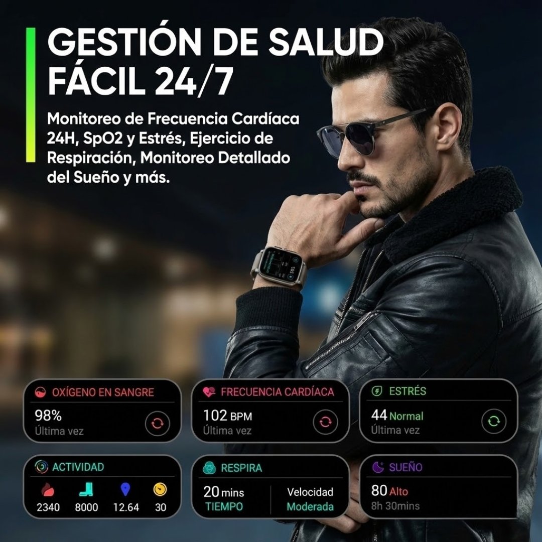 - Oxígeno en Sangre (SpO2): Medición precisa en tiempo real.